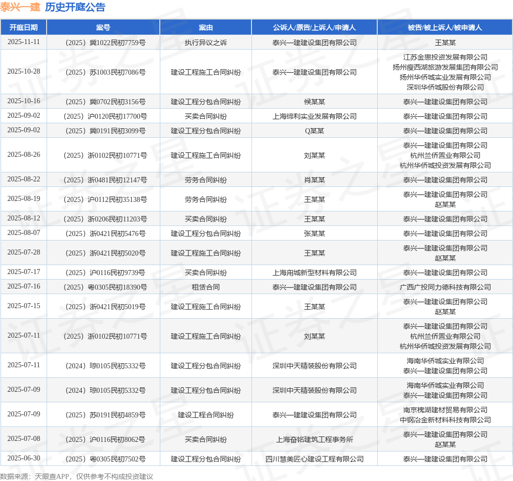本站消息,根据天眼查APP显示,近日公布了一则泰兴一建建设集团有限公司作为被告/被上诉人的开庭公告,详细内容如下: